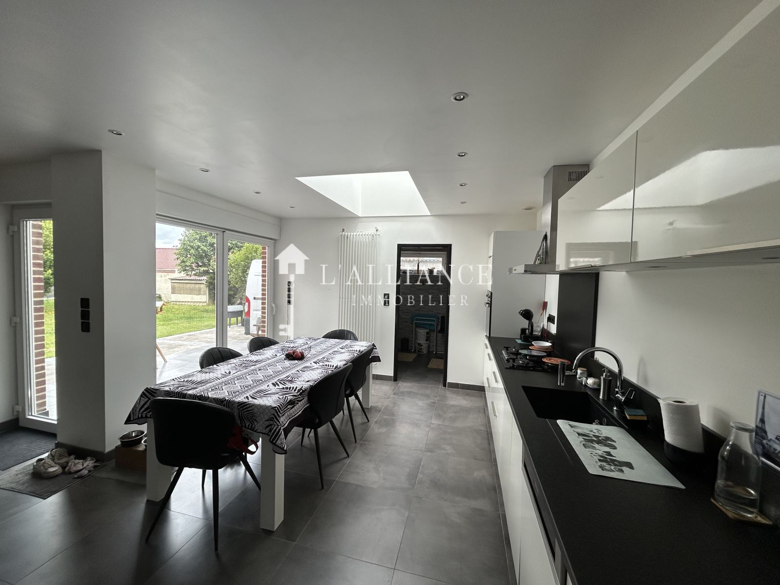 Ouverte sur séjour. Donnant sur la terrasse